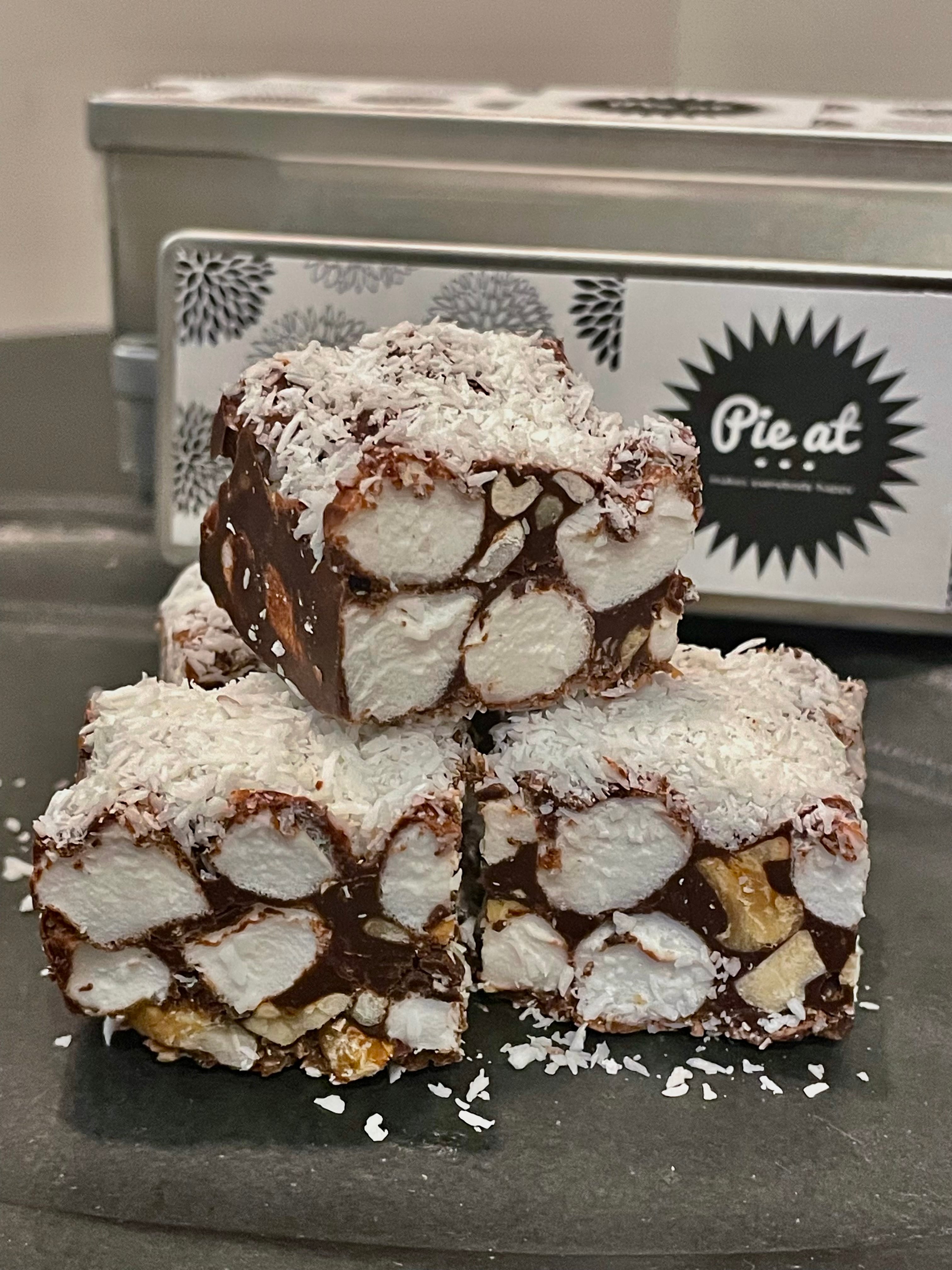 原材料:ベルギー産クーベルチュールチョコレート、マシュマロ、胡桃、ココナッツ